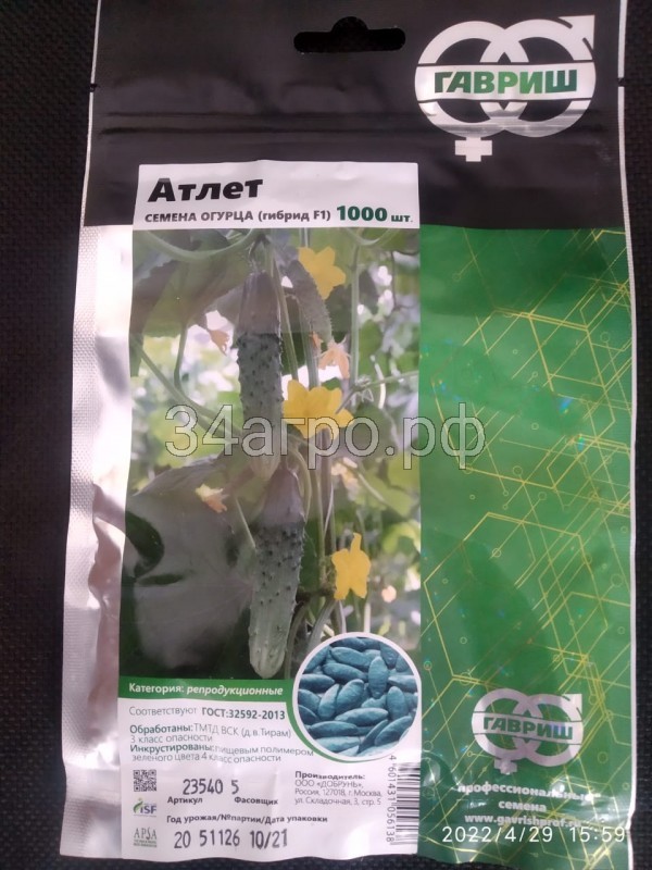 Атлет F1 - средний гибрид огурца, период созревания 50-55 дней.